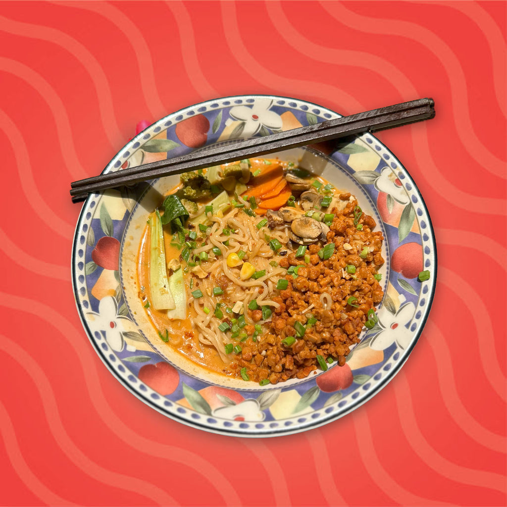Crisp up the Tempayy: Sauté the Szechuan Chilli Crumbles on high heat until golden brown and slightly crispy. This adds texture and helps it hold up in the broth.If you can’t find Tempayy Crumbles, use Tempayy Thins or Cubes - mince them up and follow the same steps.