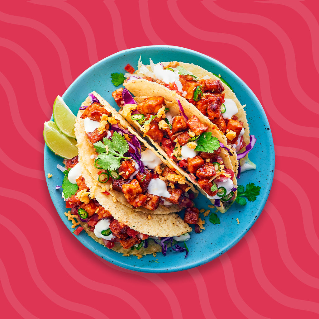 In a taco shell, place shredded lettuce leaves, layer it with Tempayy filling, salsa, and guacamole and top it off with shredded cheese.