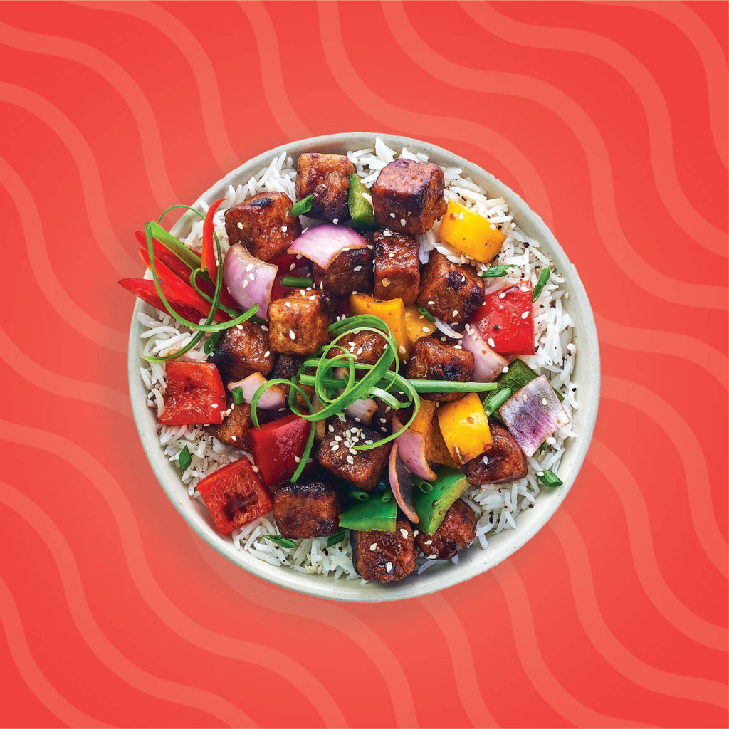 Add the fried Szechuan chilli Tempeh and stir well to coat, cook for 2 mins.