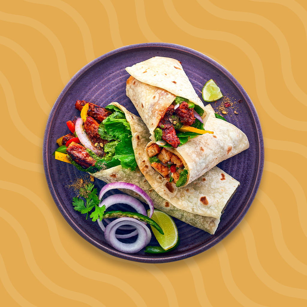 Layer the roti with mint chutney, sauteed Tempayy cubes filling.