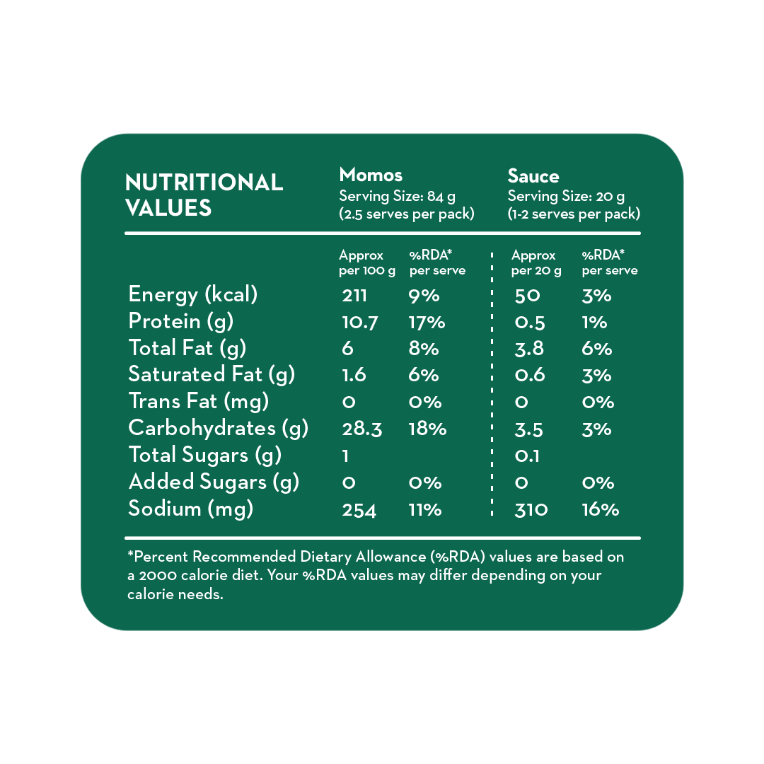 Semolina, Tempeh, Water, Cabbage, Carrot, Beans, Whole Wheat Flour (atta), Rice Bran Oil, Spring Onion, Peri Peri Seasoning, Garlic, Ginger, Seasoning Mix, Salt, White Pepper, Yeast Extract, Black Pepper, Emulsifiers (INS481, INS472e).