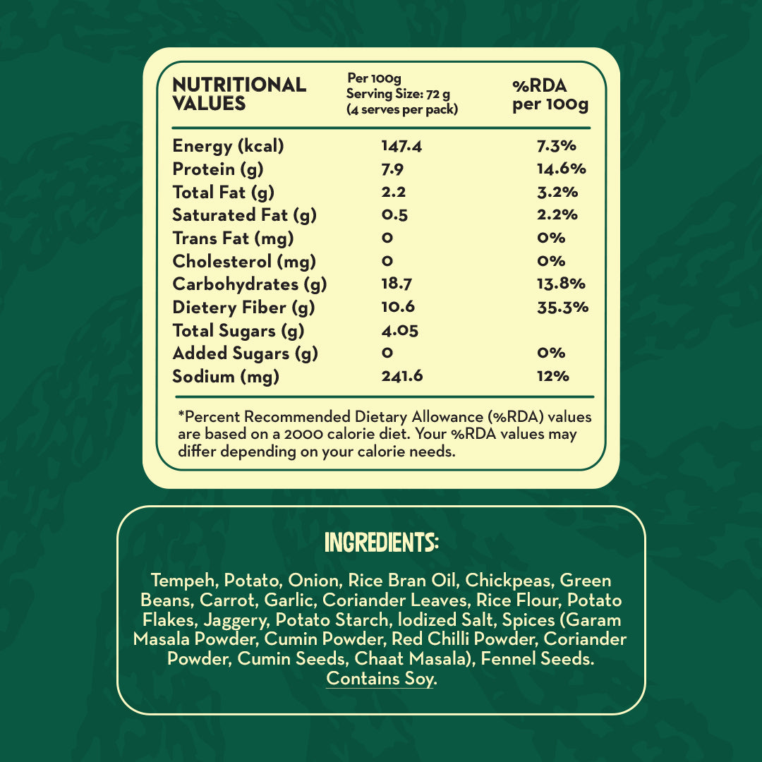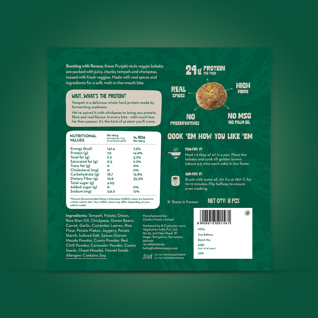 Protein Bhara Kebabs are our take on the classic hara bhara kebab - but actually bhara. Packed with tempeh and chickpeas, tossed with fresh veggies and bold Indian spices for a proper melt-in-the-mouth, satisfying bite.